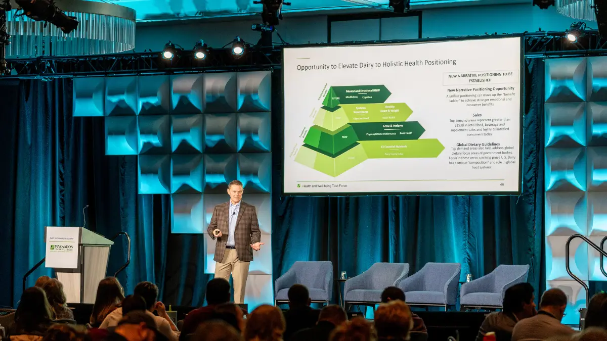 Ziemnisky shared how in 2023, the Innovation Center’s Health & Well-being Committee identified a $150 billion opportunity in nutrition and modern wellness areas of growth and performance, healthy heart and weight, systems supercharge and mental and cognitive health, where dairy can emerge as a solution.